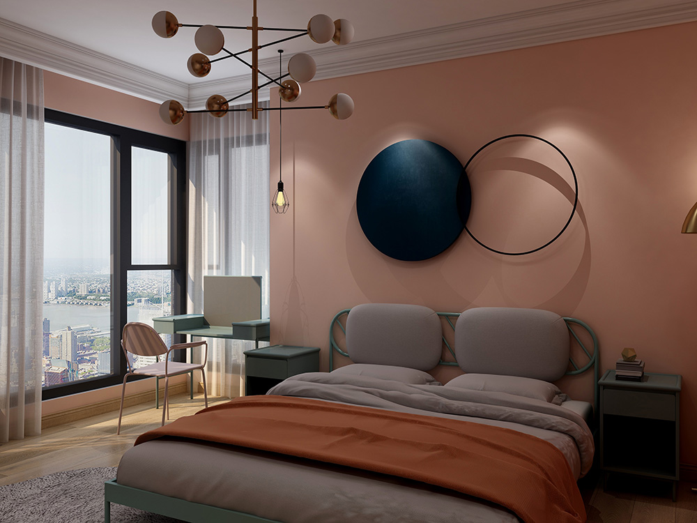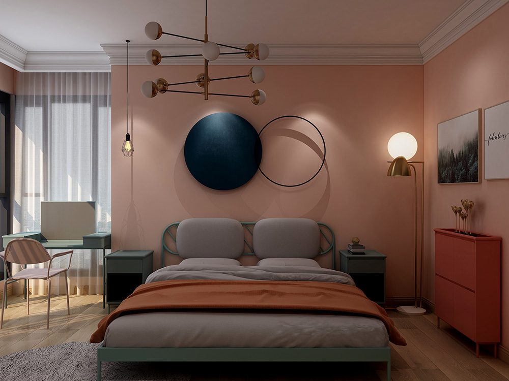 SLT4B-虾肉红T竹炭纤维无缝墙布装修案例效果图